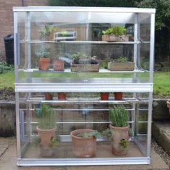 A removeable toughened glass centre staging which fits between the upper and lower section of the Growhouse.