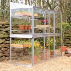 Glazed with Toughened Safety Glass – stronger than standard horticultural glass, the 3mm toughened safety glass used to glaze these Growhouses has been treated to ensure that, if the glass does break, it shatters into tiny pieces for safety. Glass provides excellent light transmission and traps heat better than plastic sheets and unlike plastic, will not go ‘milky’ in appearance with age. Glass is rigid so also has the advantage of not flexing in strong winds or under snow loads.Â