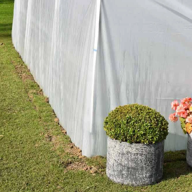 Polythene Cover Options – choose between either a clear or diffused polythene to cover the polytunnel. Both are a 720 gauge, UV ‘open’ polythene allowing UV light to reach your plants which provides many benefits such as enhanced fragrance, taste, colour, earlier harvesting, and longer post-harvest shelf life. In addition, these films promote plant antioxidants which are good for plant health and encourage stronger growth. The clear polythene has excellent clarity, with light transmission of up to 92% and is a good choice for northern and western regions where lower light levels naturally occur. The light-diffusing polythene scatters the light as it passes through the polythene enabling the light to penetrate deep into the plant canopy as it hits the plants from all directions not just from the direction of the sun. Thanks to its unique anti-condensation additive this diffused polythene can control condensation on the underside of the cover. Light transmission is approx. 2% less than clear, at approx. 90%.Â