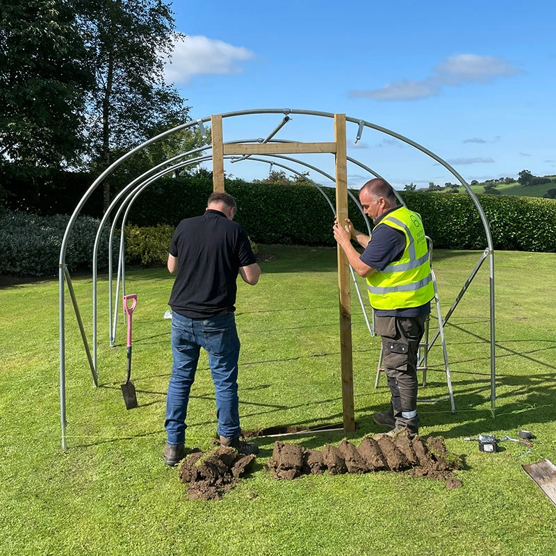 Timber Door Frames – supplied as timber battens for you to nail together and fix to the end hoop of the polytunnel.Â