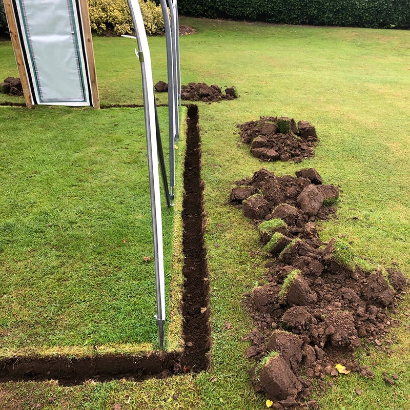 Traditional Foundation Tubes – this allotment tunnel has a cover which is trenched into the ground. Therefore the foundation tubes supplied simply need to be knocked in the ground, leaving 34-45cm protruding into which the hoops will be fitted. Â