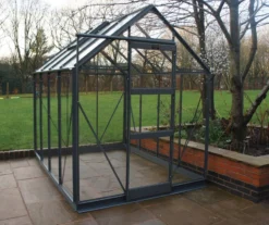 Titan K800 Lean-To – supplied with double 3’9’ (1150mm) wide x 6’3” (1910mm) high doors with optional 3’9” (1150mm) wide double doors available making doors either end, or doors on the width of the greenhouse and doors on the length of the greenhouse (please specify where you would like the door when placing an order)