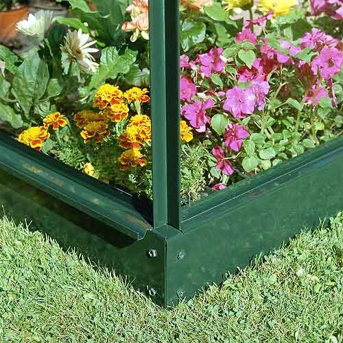 Prefabricated galvanised steel – available plain or with a green powder coated finish to suit the finish on your greenhouse frame.