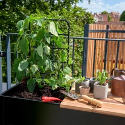 Useful full size tray – fitting into the top of the unit this forms the ‘roof’ of the greenhouse section and provides you with a place to work or grow. This deep tray can be filled with compost making a place for potting up without any soil spillage. The wooden surface panel fits across half of the unit providing a secure place to work. A sturdy trellis panel is also included letting you raise crops in the top tray if required – it would make the perfect growing spot for a bush tomato plant for example.
