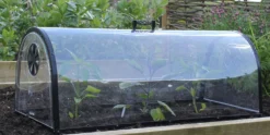 For long life this cloche has a galvanised, black powder coated steel frame with high quality, UV resistant clear plastic.