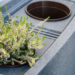 With a dimpled surface, this water butt is available in three colours / finishes charcoal, granite or sandstone.