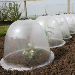 Each cloche has four holes in its’ base to enable it to be firmly anchored using ground pegs (available to purchase separately).