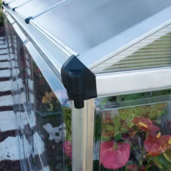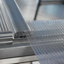 Combined Polycarbonate Glazing For Optimal Growth – roof panels are made from twin-wall polycarbonate to produce diffused light so protecting plants from scorching by strong sunshine. The wall panels are made from crystal clear polycarbonate which provides over 90% light transmission. Both glazing panel types are virtually unbreakable, high impact and flexible.