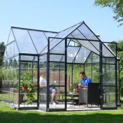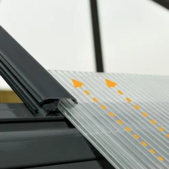 Two Types Of Polycarbonate Glazing For Optimal Growth – roof panels are made from twin-wall polycarbonate to produce diffused light so protecting plants from scorching by strong sunshine. The wall panels are made from crystal clear polycarbonate which provides over 90% light transmission. Both glazing panel types are virtually unbreakable, high impact and flexible. Being 100% UV protected they will not discolour, fracture or shatter, providing many years of use.
