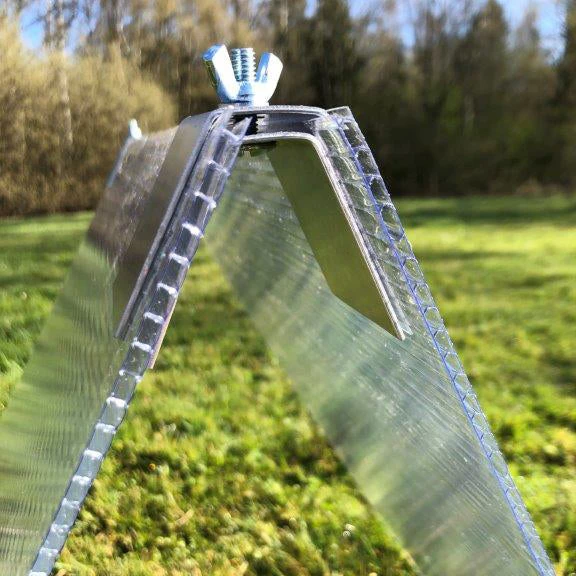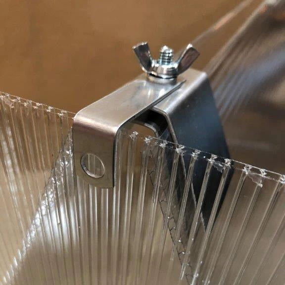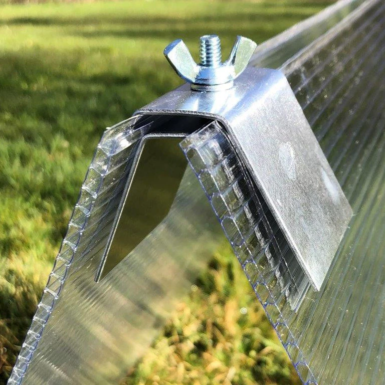 Each Super Cloche Clip comes complete with an end panel retaining clip to hold a vertical panel at the end to close off your cloche. Â