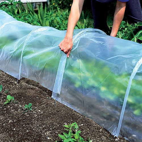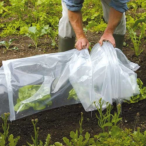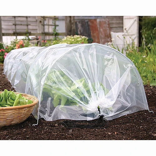 Ends of the cloches can be positioned open, partially open or fully closed for complete protection, or overlap the end of one tunnel with another to create even longer cloches.